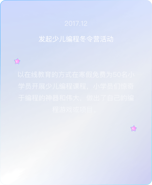 我们的愿景是把更简单、更便捷、更高效、更有趣的少儿人工智能编程教育,带到全国每一个孩子的身边。我们希望让编程改变孩子未来,让孩子用编程改变世界。